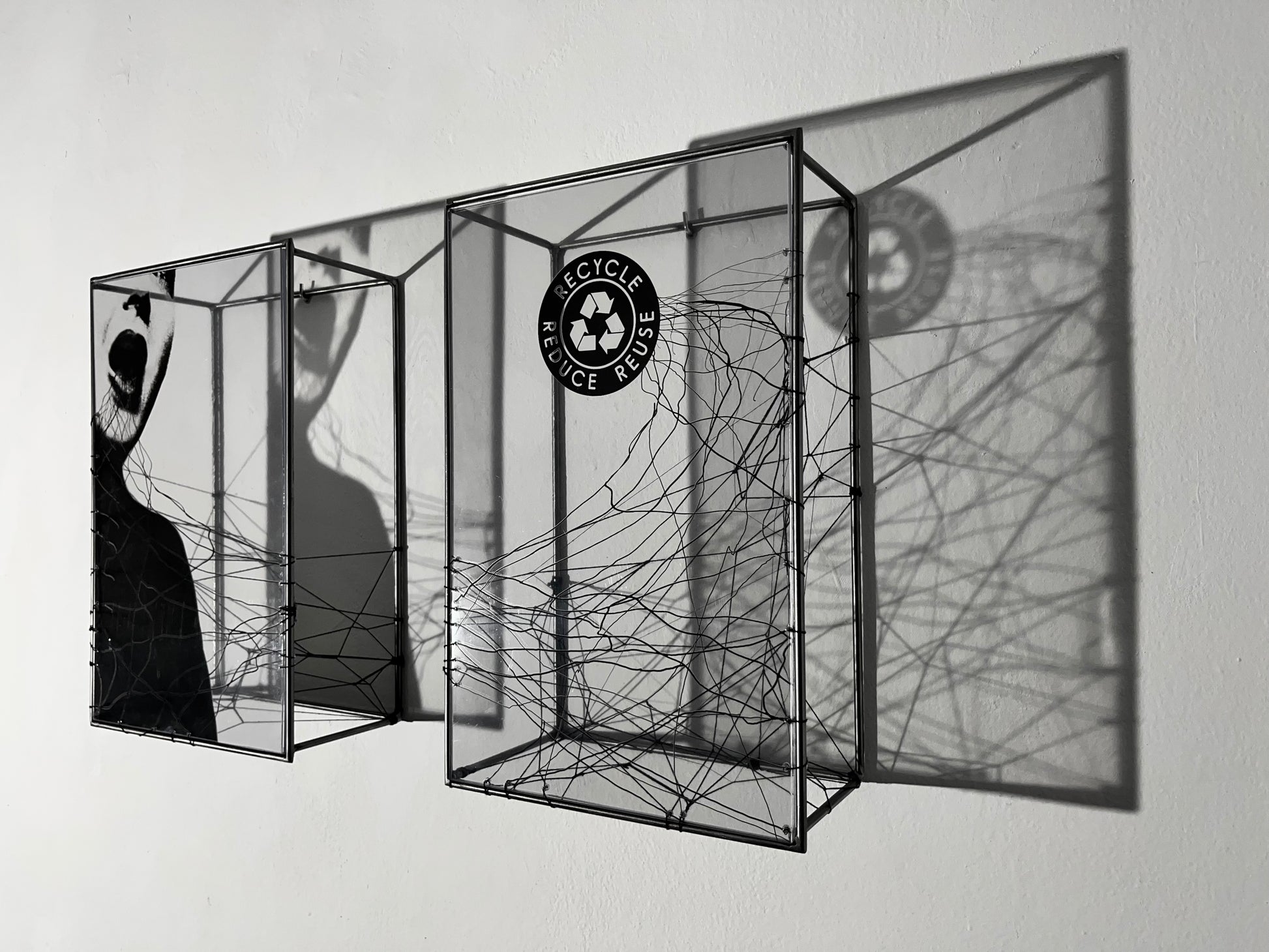 A multi-dimensional visual play on our use of words, cliche, symbols and idioms. Statement art about statements themselves. This light and shadow sculpture places a two dimensional image in