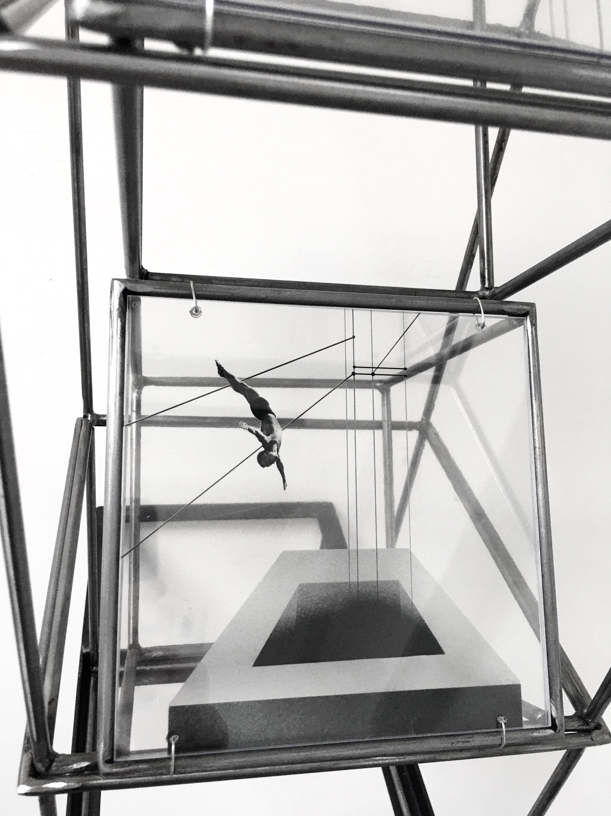 This contemporary art sculpture, The Perfect Recovery, is an original work designed and handmade by Furst_Ori, the art team behind ArtandShadow. In three images, a falling figure gracefully transforms into a perfect dive within one of our largest shadow sculpture towers created to date. This stunning piece showcases a contemporary, modernist aesthetic that will enhance any interior home style. Add a touch of artistic flair to your space with this unique and captivating sculpture.