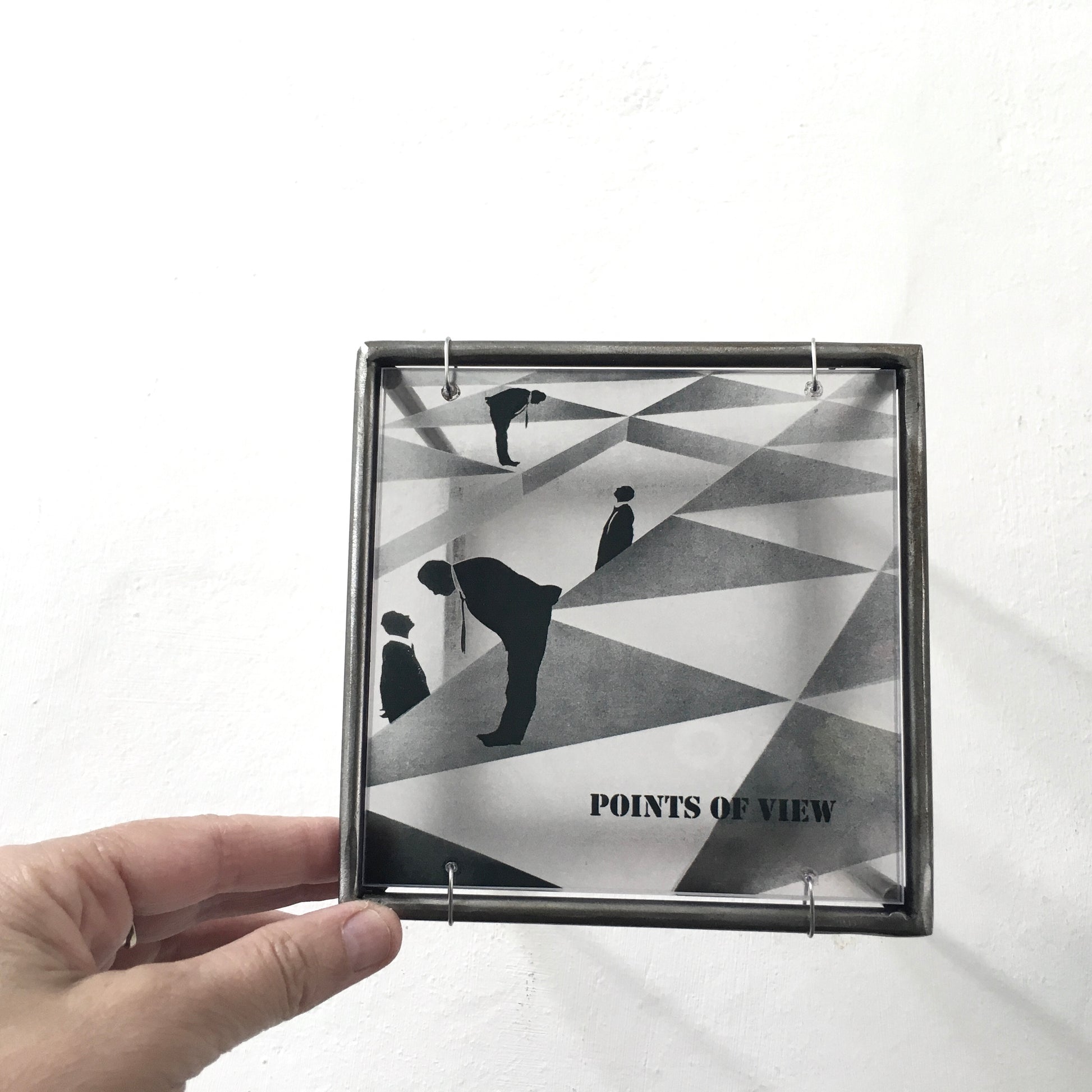 Points of View, an original art piece housed in an elegant metal structure for wall or desktop. Designed to lend a contemporary feel to your home interior with a touch of humor. An original airbrushed illustration from Furst_Ori turned into a high quality acetate print and mounted in a handmade steel frame.