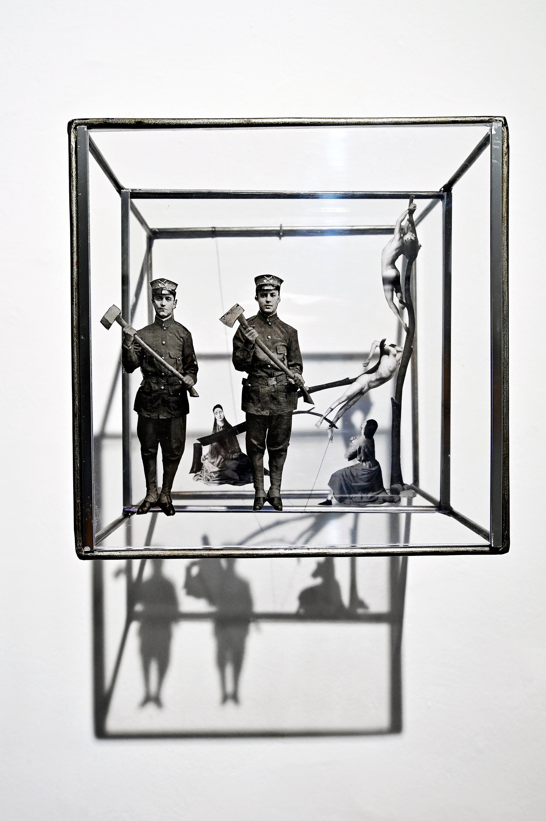 Two proud woodsman having intervened in a crucifixion scene by early renaissance painter Antonello da Messina.